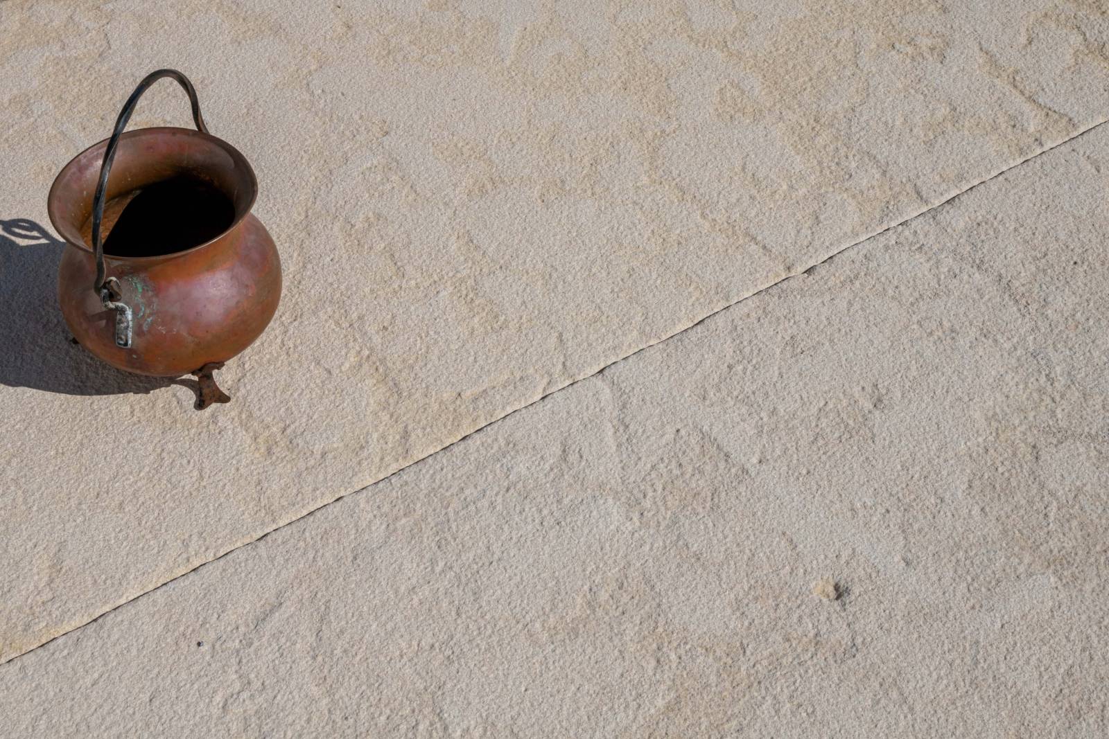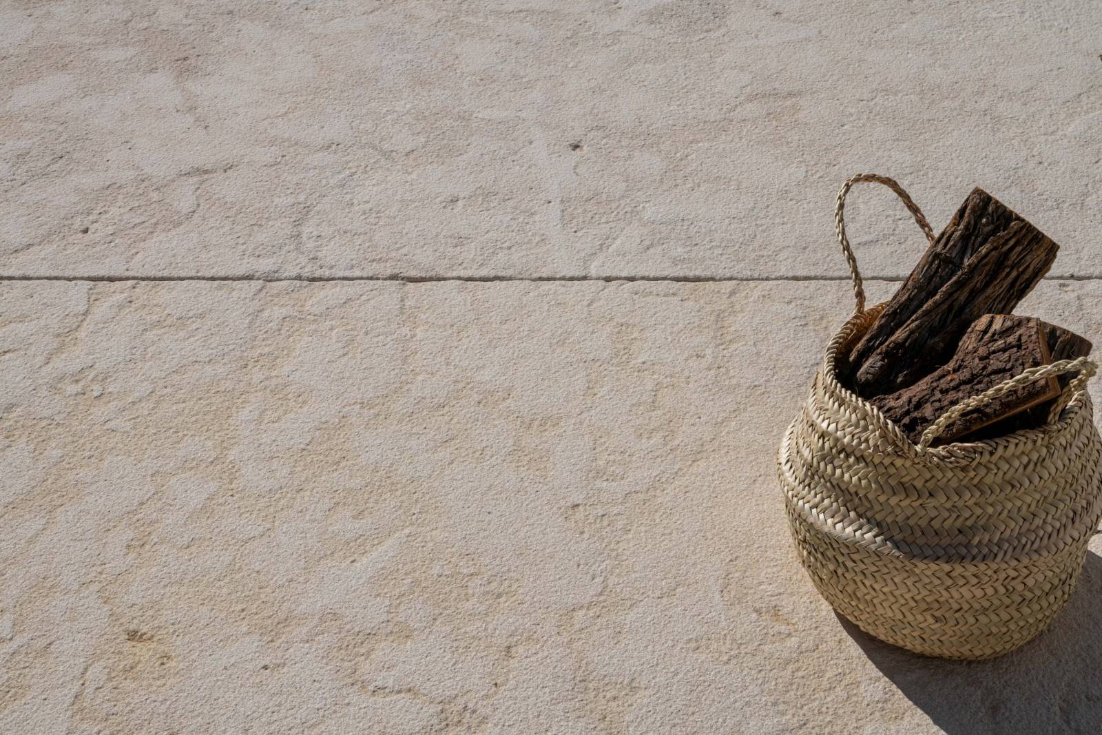 For outdoor paving, a textured and aged finish like Grignan is highly recommended. It provides excellent grip, durability, and a natural aesthetic, making it ideal for terraces, pool surrounds, and garden pathways.